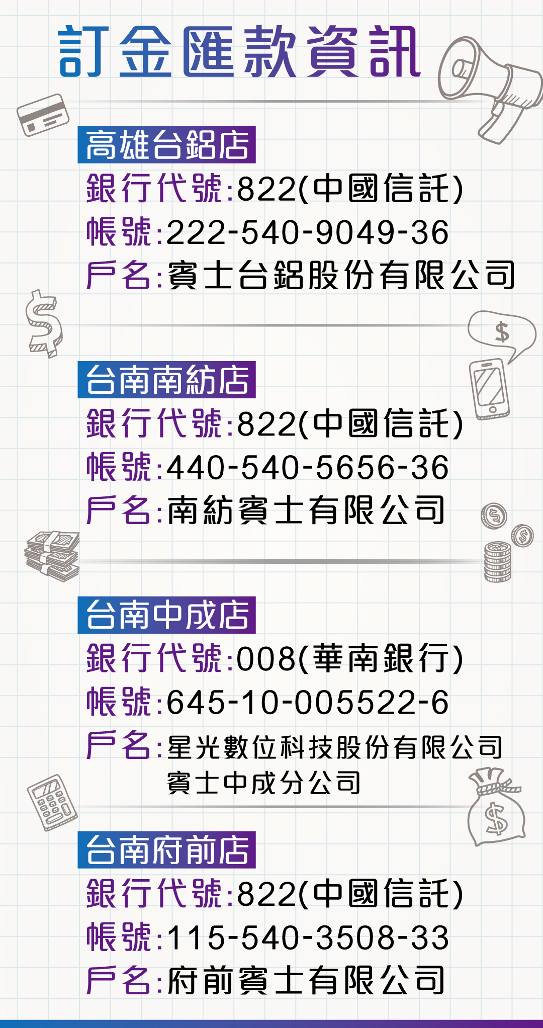 訂金匯款資訊
