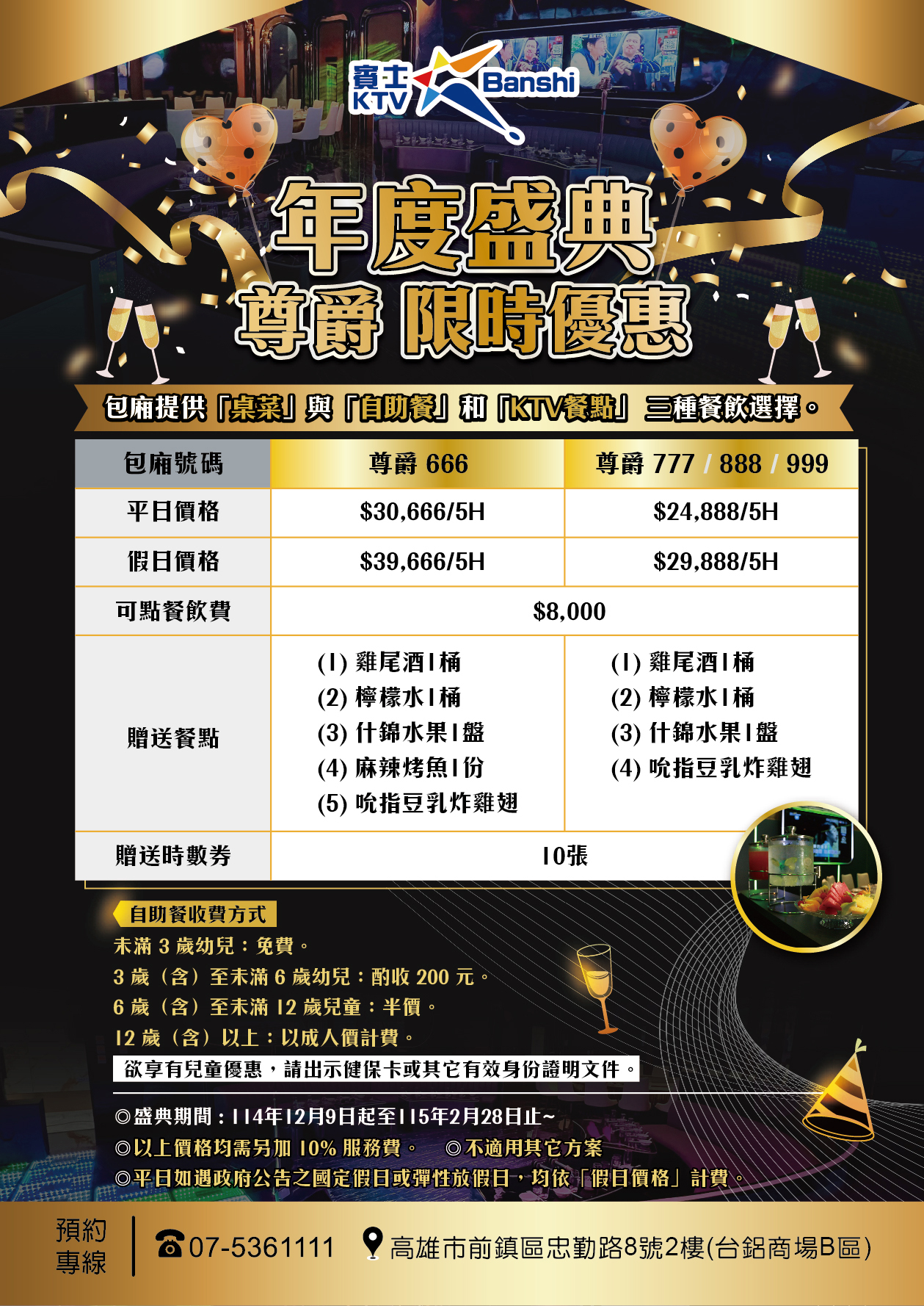 年度盛典|尊爵包廂限時優惠(高雄台鋁店)