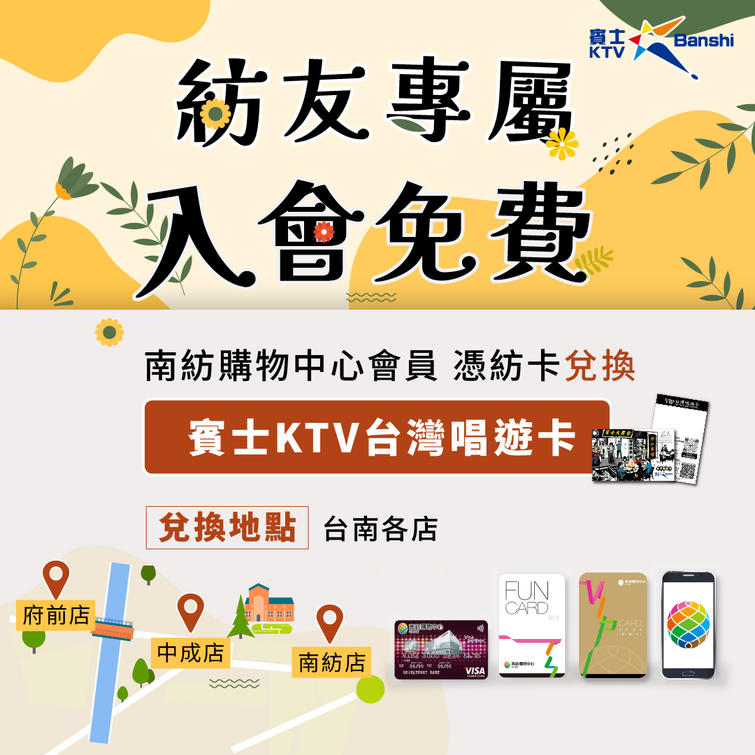 1️⃣南紡購物中心會員可兌換台灣唱遊卡