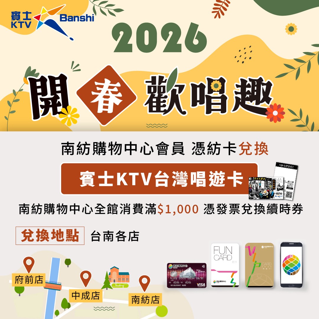 2️⃣南紡購物中心消費滿$1,000 憑發票兌換歡唱續時券😍