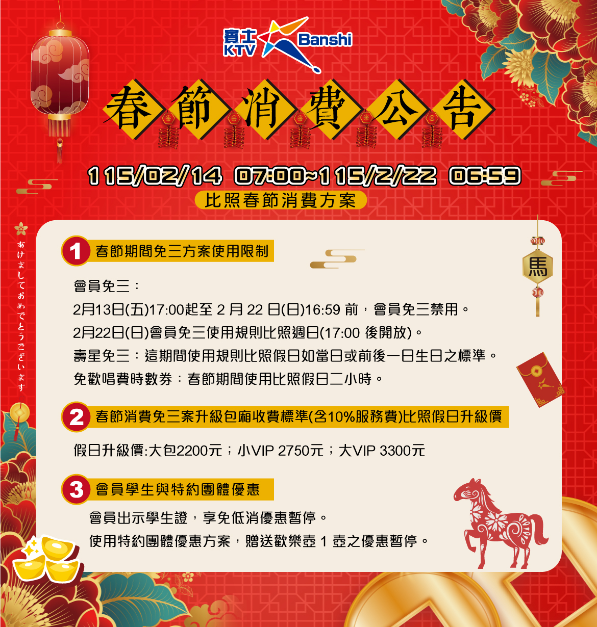 2026春節消費公告【台南各店】